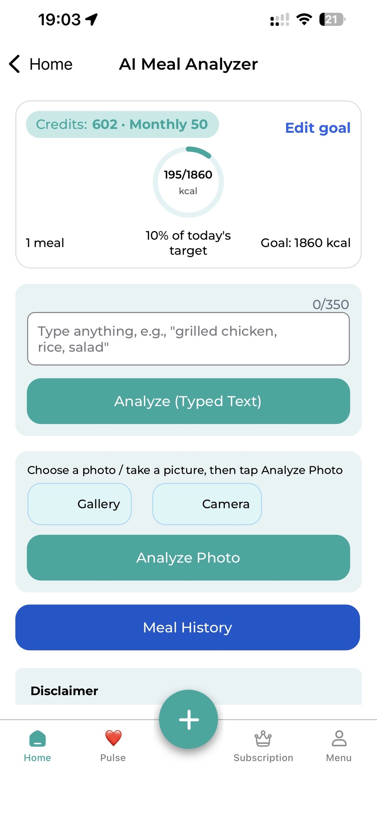 AI Meal Analyzer estimates are for guidance only and should not be treated as medical advice.